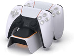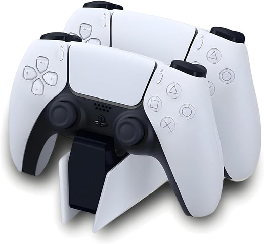 قاعدة شحن Dobe مزدوجة ليد تحكم PS5 DualSense. تشحن يدين بنفس الوقت مع مؤشر LED لحالة الشحن. تصميم مدمج وعملي.