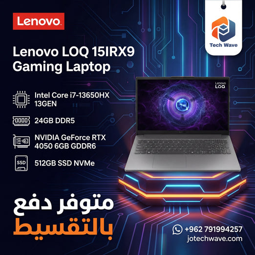 أطلق العنان لوحش الألعاب الذي بداخلك مع لابتوب Lenovo LOQ 15IRX9 الجديد! الآن يمكنك امتلاكه بقسط شهري مريح يبدأ من 36 دينار أردني فقط. تمتع بأداء لا يصدق بفضل معالج Intel Core i7 من الجيل الثالث عشر وكرت الشاشة الجبار NVIDIA GeForce RTX 4050، مما يجعله خيارك الأمثل لخوض أشرس المعارك الرقمية والتفوق في ساحات اللعب.